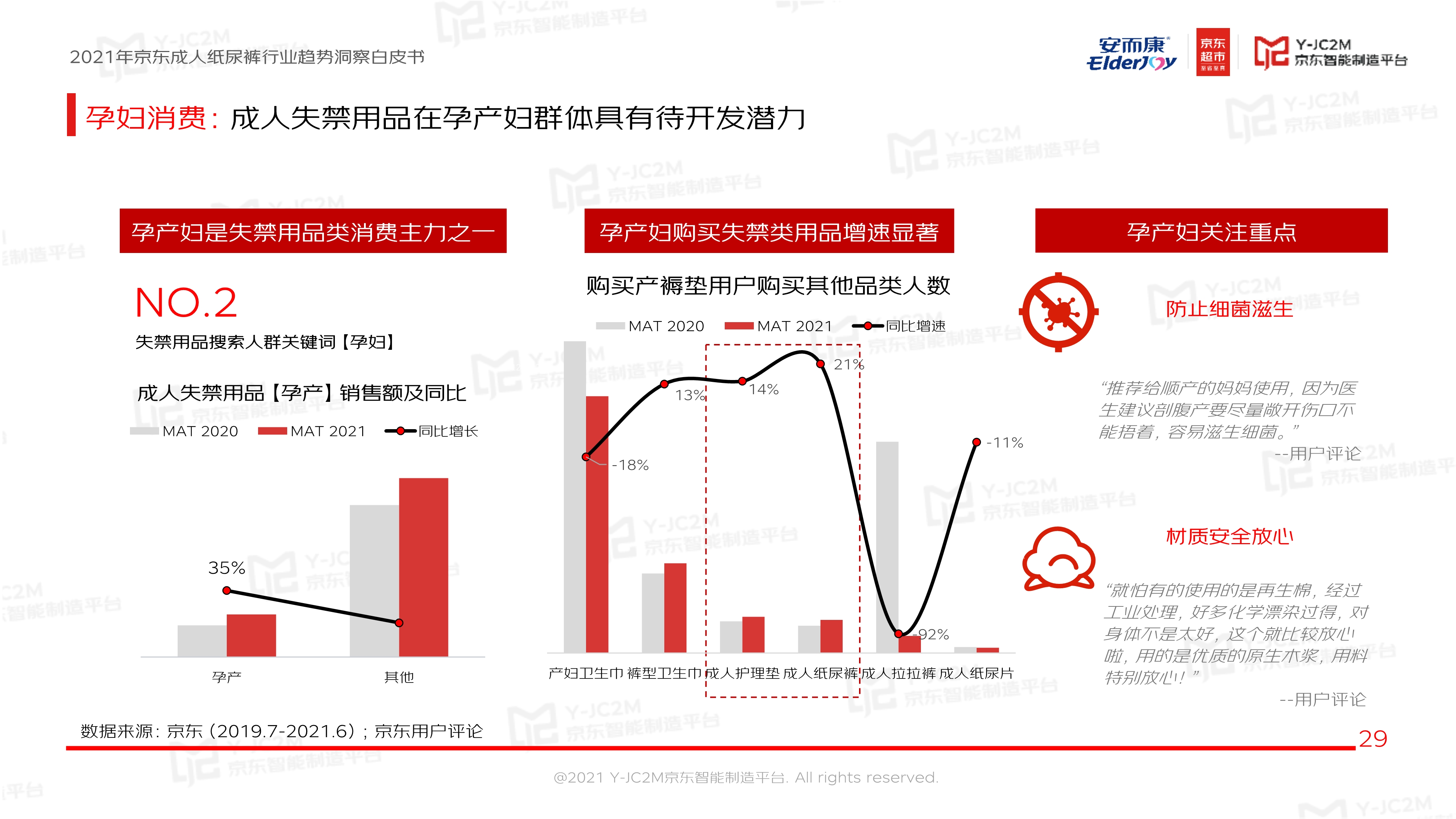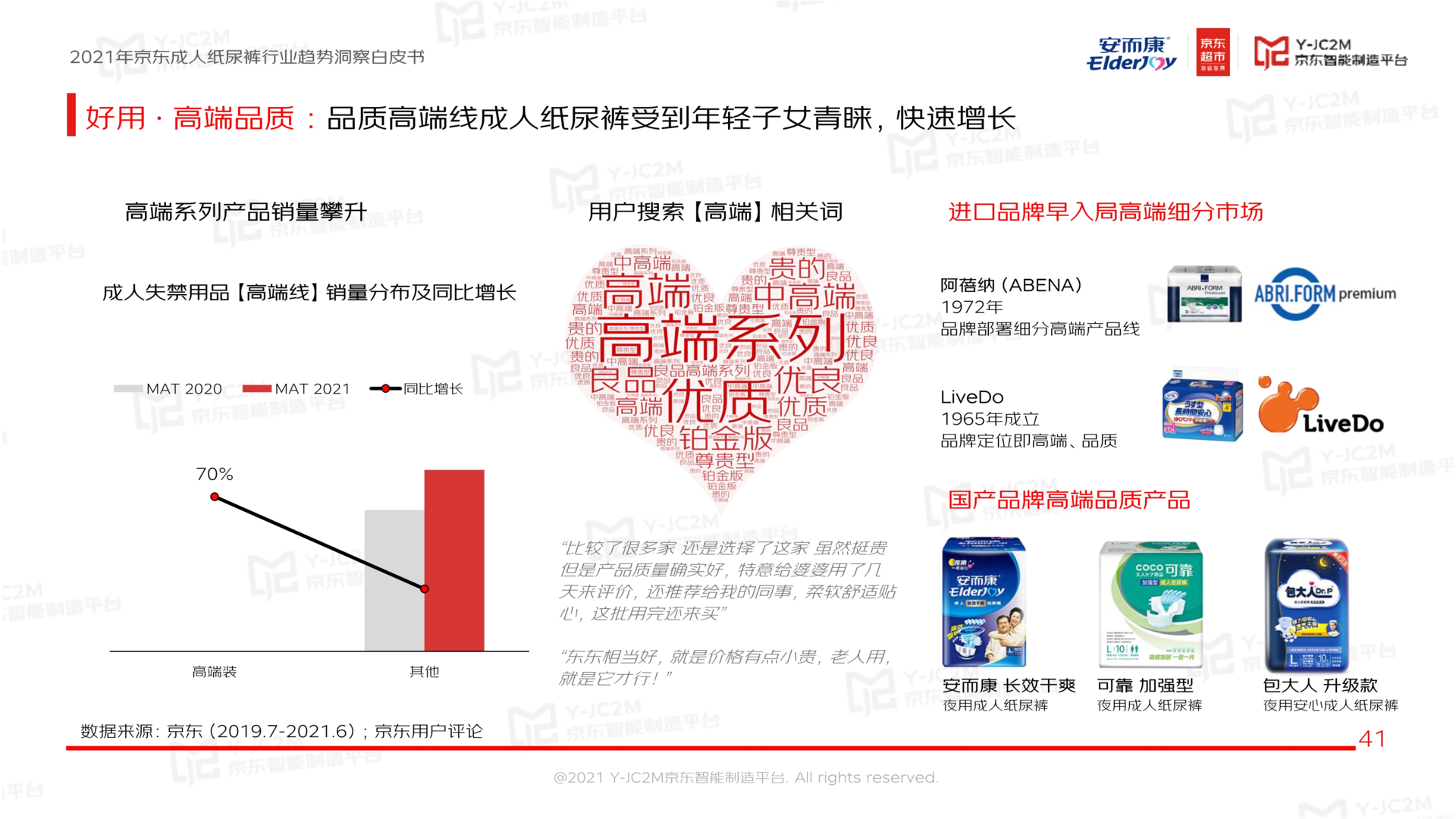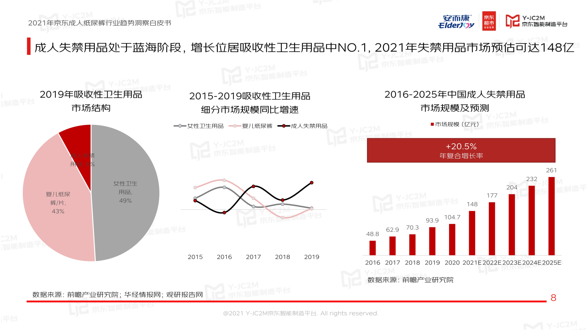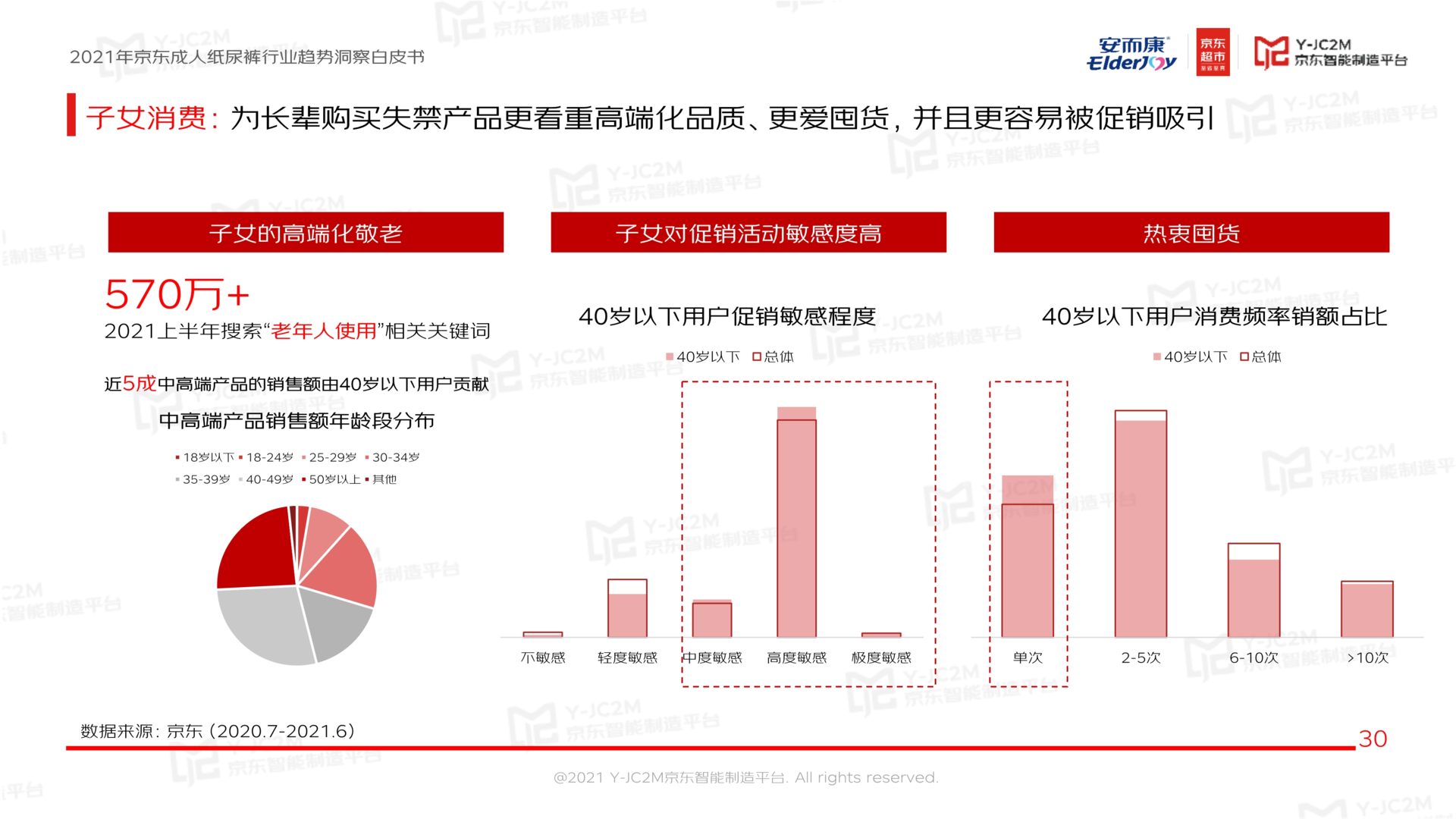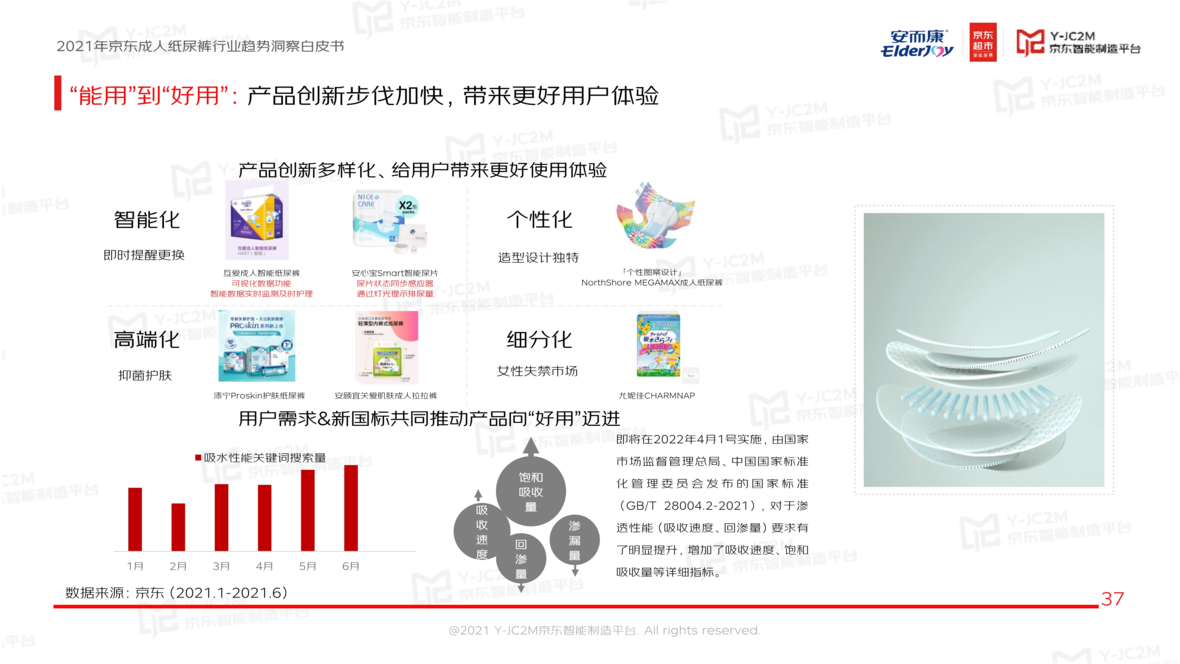 近日,创世红海集团旗下成人纸尿裤品牌安而康联合京东智能制造平台共同发布《2021年京东成人纸尿裤行业趋势洞察白皮书》(下称《白皮书》),从行业概况、品牌格局、用户洞察、趋势展望四个维度,结合销量数据与消费者,深入剖析了随着我国步入老龄化社会以及消费观念不断升级,国内纸尿裤市场的全新变化与发展趋势。