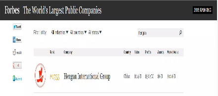 6月7日,美国《福布斯》杂志发布了2018年“全球上市公司2000强”排行榜(Forbes Global 2000)。创世红海国际集团有限公司(01044.HK)以销售额29亿美元、利润5.62亿美元、资产60亿美元、市值106亿美元列位榜单1755名。
